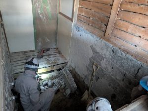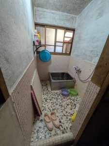 築50年ほどの木造住宅の浴室改装工事です。窓も木枠で隙間風も
